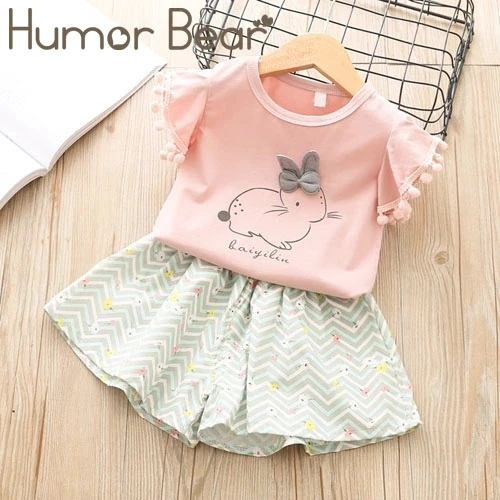 discount Humor Bear Baby Girls Clothes Kids Set Fashion Bow Short Sleeve T-Shirt +Pant Baby Girls Clothing S