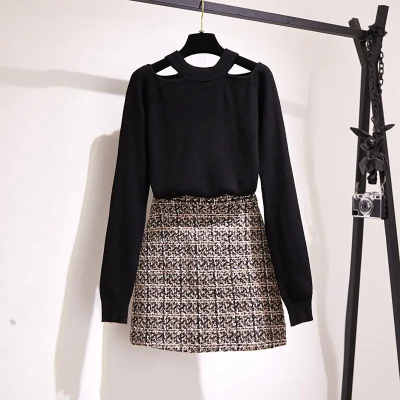 ICHOIX Office ladies 2 Piece set Winter clothes elegant two piece Korean outfits women grey sweater Houndstooth skirt set 2pcs,ICHOIX Plaid mini skirt set Korean style women 2 piece set girl student casual Sweet 2 piece outfits femme winter sweater set, ICHOIX Plaid mini skirt set Korean style women 2 piece set girl student casual Sweet 2 piece outfits femme winter sweater set