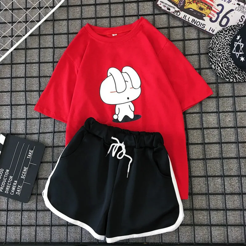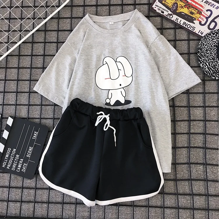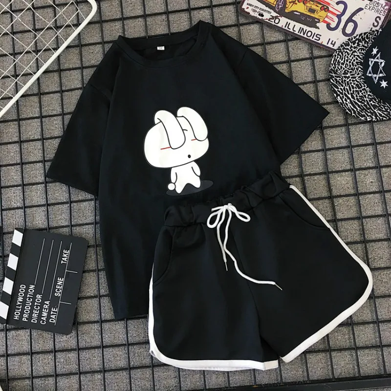 astounding MILINSUS New 2019 summer Plus size Women sets print T shirts + Black shorts 2 piece set Female Casu