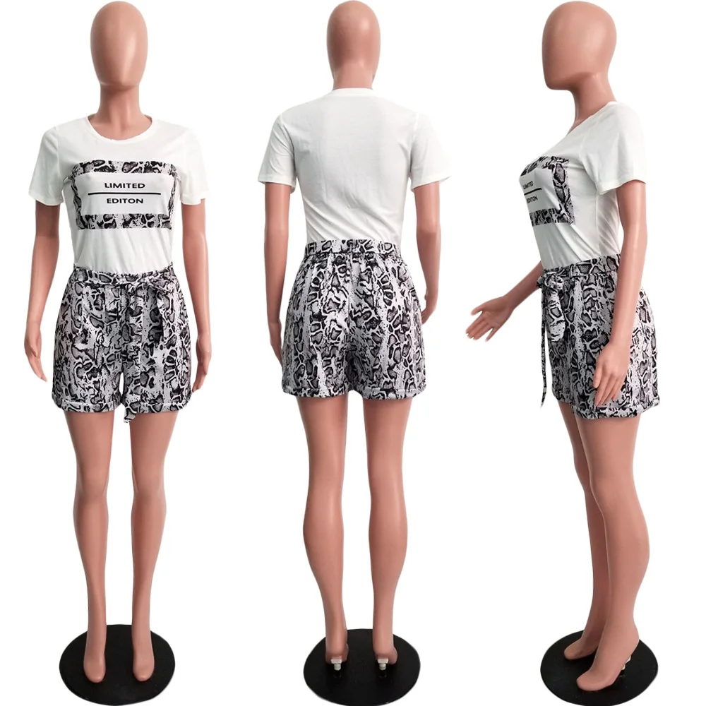 discounted Casual 2 Piece Set Women Snake Print Tracksuit Sexy Summer Outfits Top and Short Pants Jogging Matc