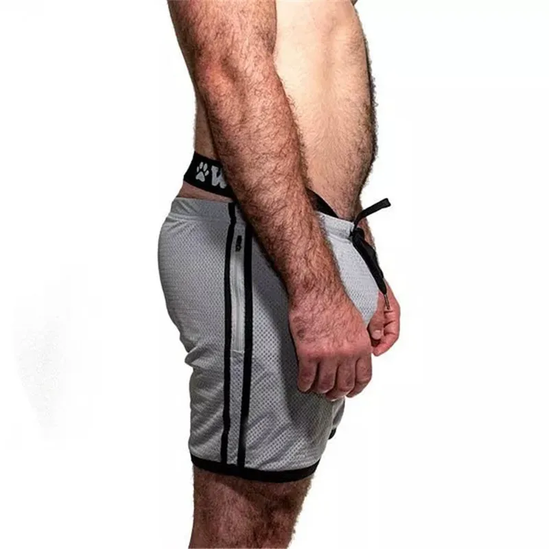 New Men Fitness Bodybuilding Shorts Man Zip pocket Gyms Workout Male Breathable Mesh Quick Dry Sportswe
