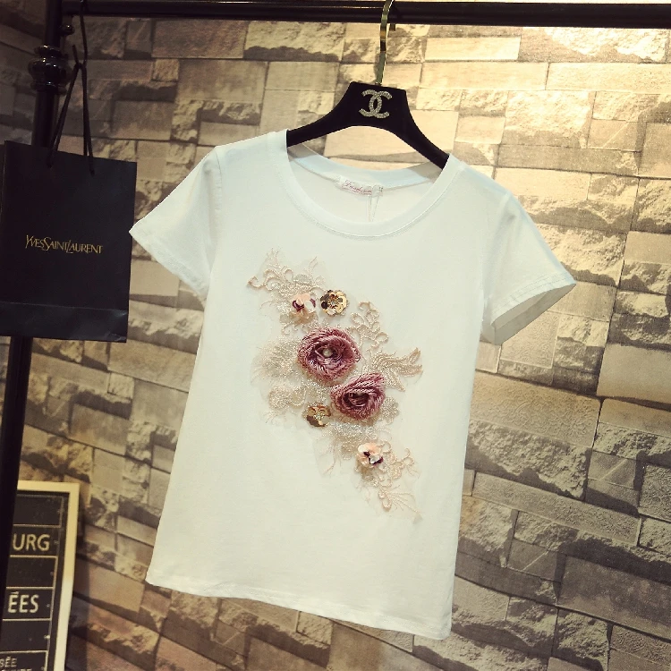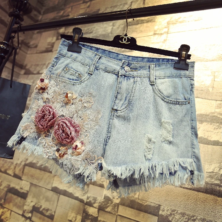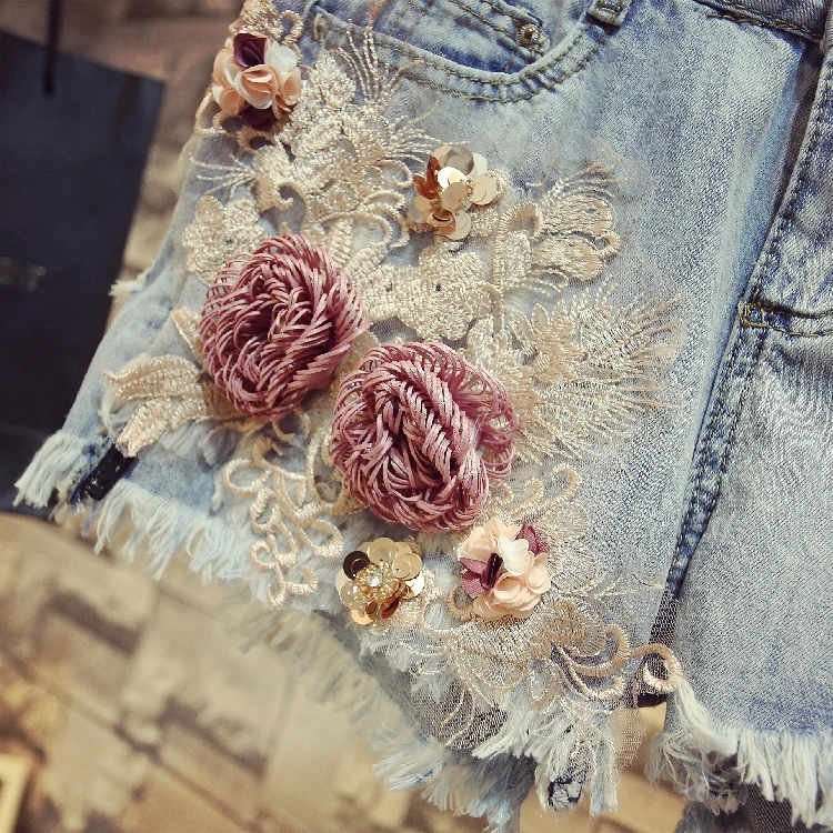 2018 Summer New Fashion Girls' Fashion 3D Flowers Short Sleeve T-shirt + Denim Shorts Twopiece Women Tassel Hole Jeans Sets,Europe Summer 2018 Woman New Three-dimensional Flowers Embroidered with Sequins Short Sleeved T-shirt + Denim Shorts Suit Sets, Europe Summer 2018 Woman New Three-dimensional Flowers Embroidered with Sequins Short Sleeved T-shirt + Denim Shorts Suit Sets