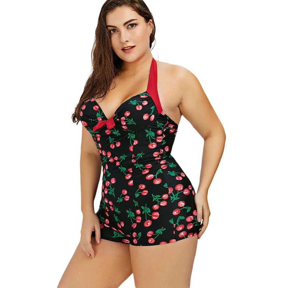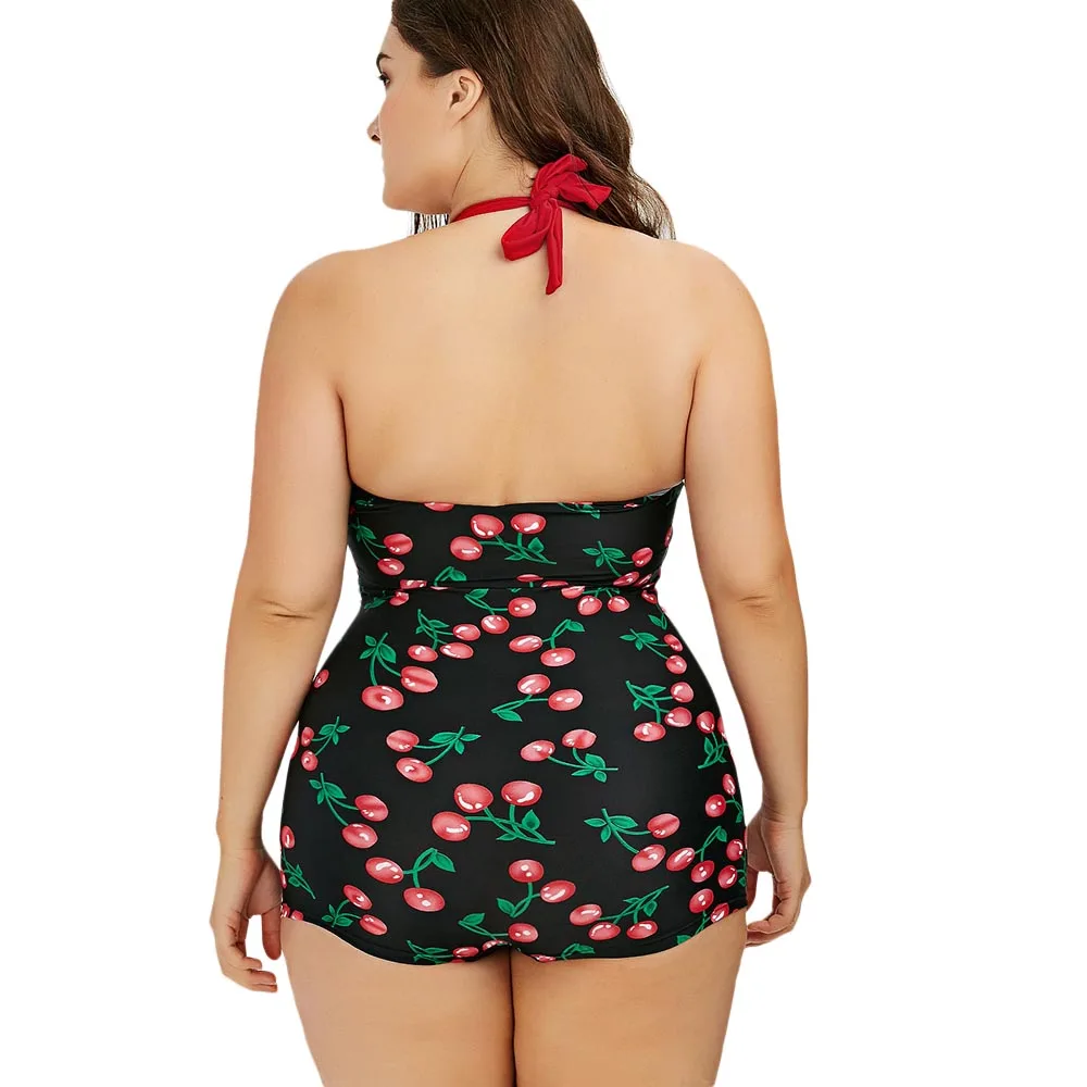 astounding Wipalo Women Plus Size Halter Cherry Boyshort Vintage Bathing Suit Plunging Neck Casual Beach Swim