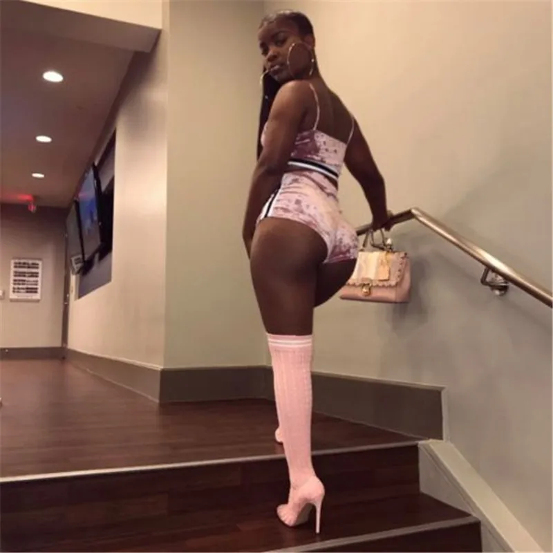 Ideal 2020 Velvet Sexy 2 Piece Women Cami Crop Top with Shorts Sporting Suit Feminine Summer Striped Wome