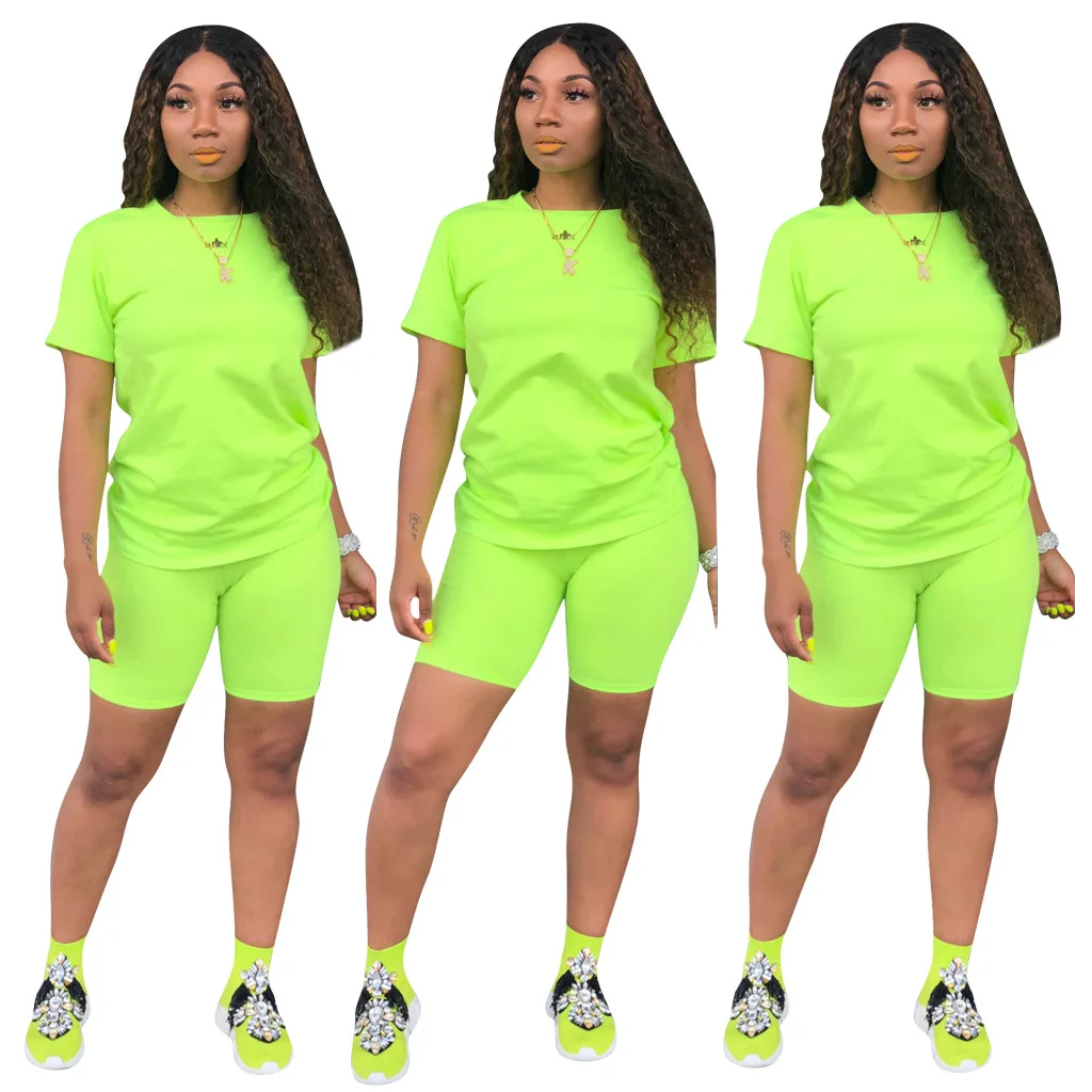 wonderful HAOYUAN 2 Piece Set Women Tracksuit Festival Clothing Neon Crop Top and Biker Shorts Sexy Club Outf