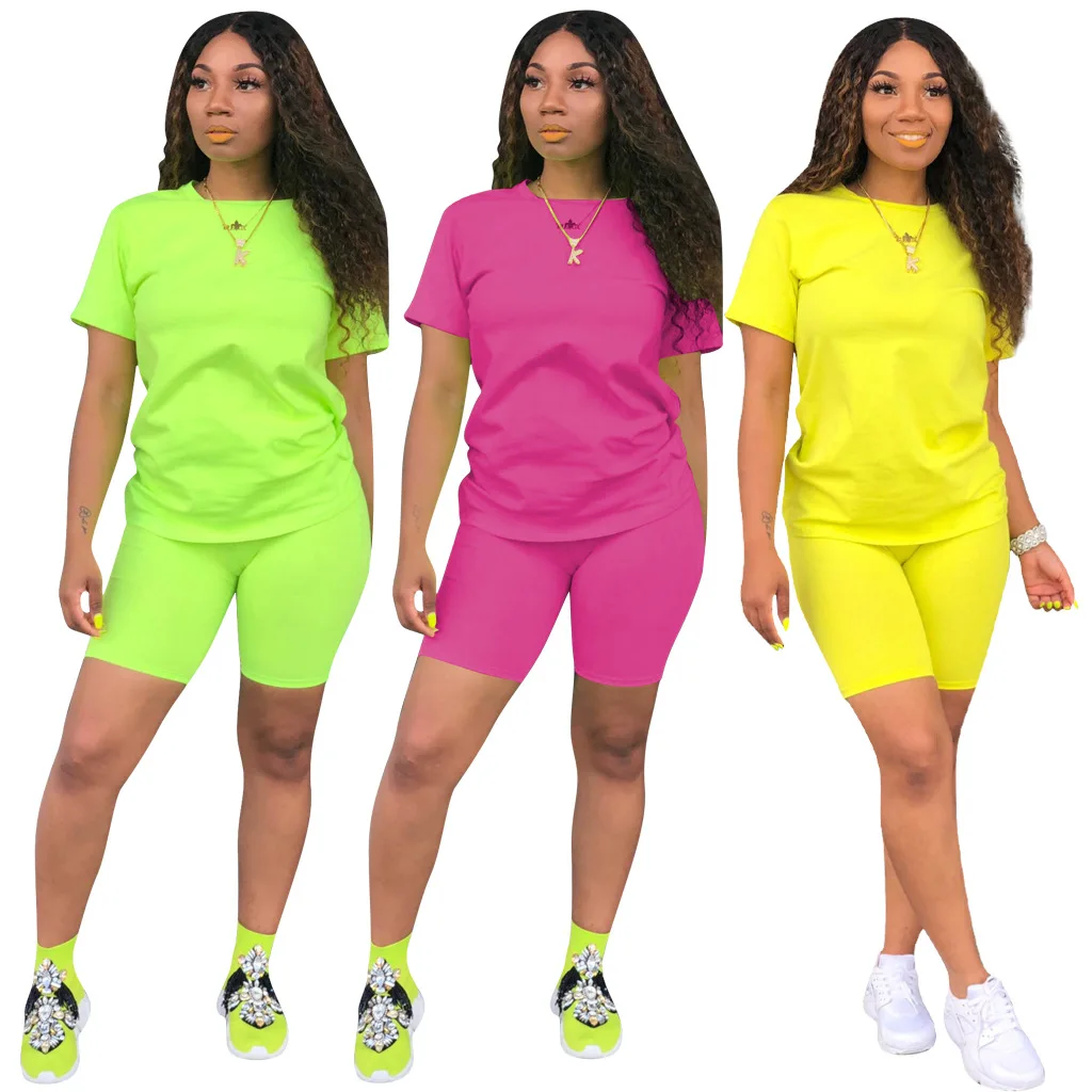 buy HAOYUAN 2 Piece Set Women Tracksuit Festival Clothing Neon Crop Top and Biker Shorts Sexy Club Outf